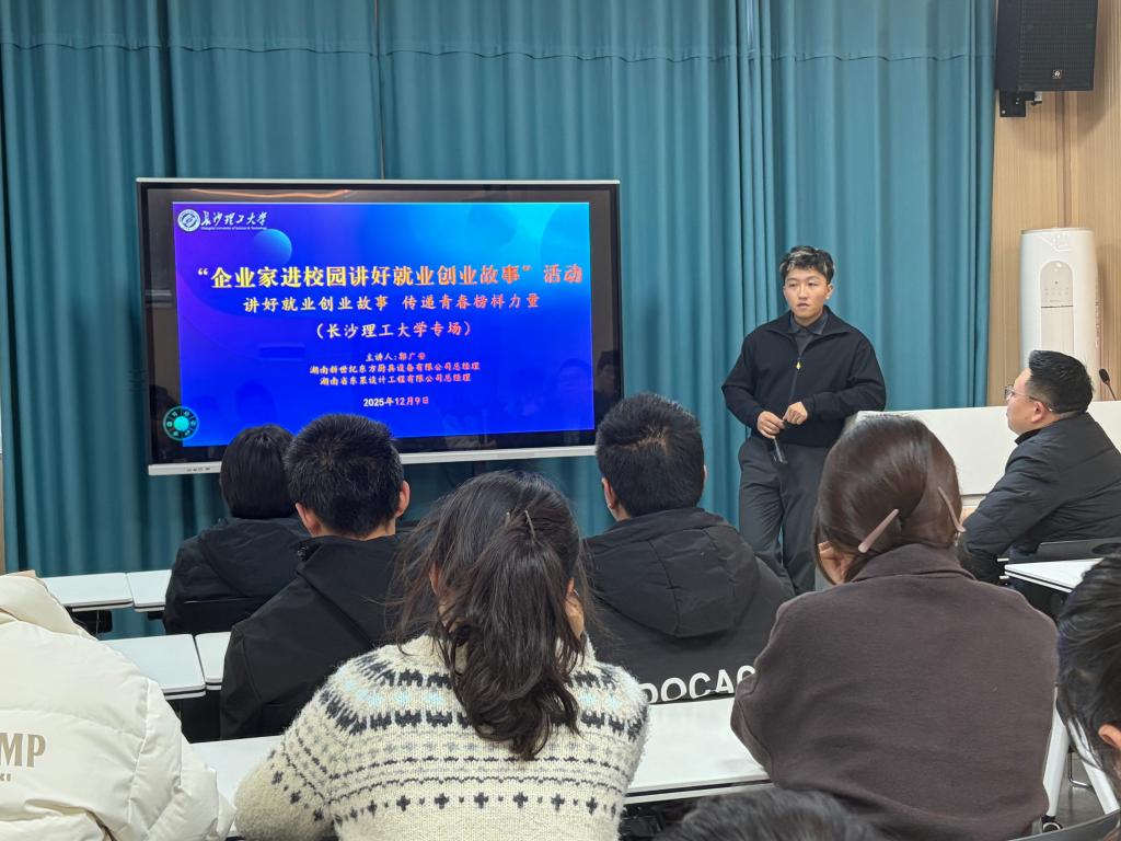 郭广安是湖南新世纪东方厨具设备有限公司和湖南省东果设计工程有限公司总经理,他结合两个公司创业遇到的困难与挫折,聚焦创业底层逻辑与企业文化的构建,通过选择、第一性原理、长期主义三个关键词,讲述了从需求洞察选定赛道、依靠坚持深耕破局困境的创业历程。他还针对团队协作、资源整合等实际难题,传递客户至上、共生共赢的文化理念。郭广安特别指出,同学们在准备创业前需先夯实专业基础、积累校园实践经验,切勿急于求成。从一个个项目案例解读到一张张工业图纸展示,同学们对创业的过程及理念逐渐清晰。交流环节氛围热烈,同学们围绕学业与创业平衡、新手创业切入点等问题踊跃提问。