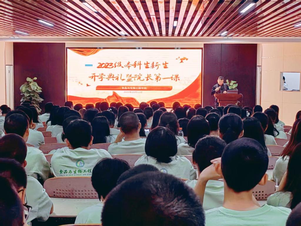 10月12日晚上,食品与生物工程学院在云塘校区工科三号楼A307举行2023级本科生新生开学典礼暨院长第一课,学院院长程云辉、专职组织员方碧波、党总支副书记练黎旋、副院长方芳、副院长许宙、教授委员会主任易翠平、生物学科带头人文李、食品系系主任李彦、全体新生班主任及辅导员出席,2023级全体354名新生参加。典礼由方碧波主持。
