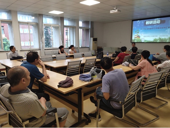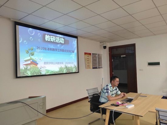 为落实贯彻教务处下发的“关于开展2020年教学院系(室)主题教研活动与学习安排的通知”内容要求,数统学院公共数学系在理科楼A311公共数学系教研室举行了“2020年本科教学工作要点文件汇编”的专题教研学习活动。本次教研活动由公共数学系主任谭艳祥主持,公共数学系全体教师参加了此次会议。