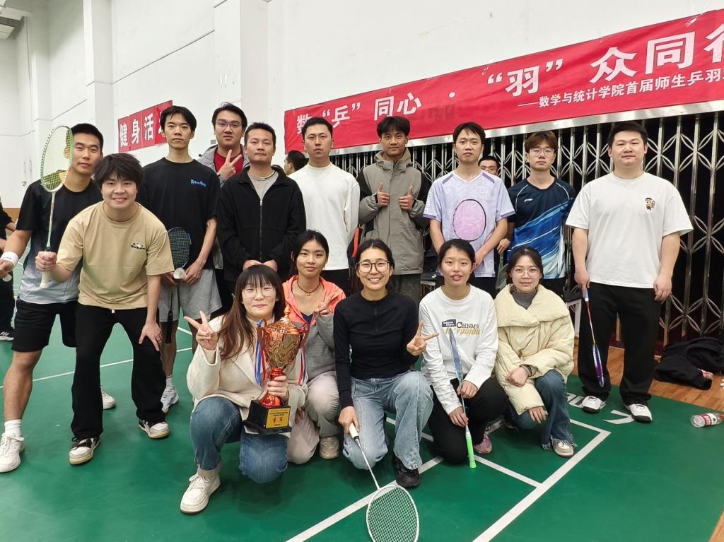 6月25日、27日晚,数学与统计学院首届师生“乒羽联赛”在国产a视频免费观看不卡云塘校区体育馆乒羽中心顺利举行并圆满落幕。本次赛事由数学与统计学院工会主办,数学与统计学院教职工羽毛球队、教职工乒乓球队、学生羽毛球队、学生乒乓球队协办,院党委委员、纪委书记仝青山主持,共吸引70余名师生组成三支代表队参与角逐。
