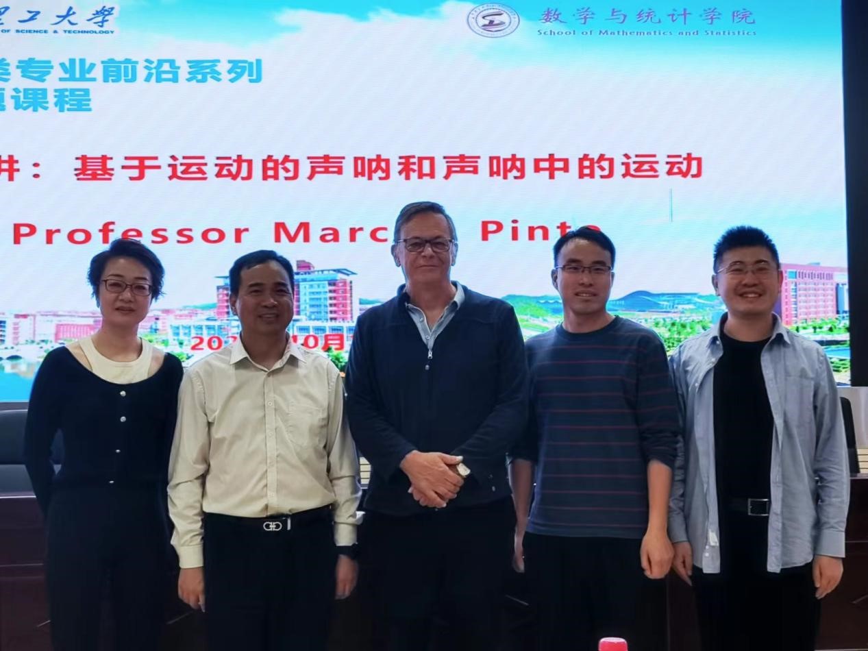 10月17日上午,应数学与统计学院邀请,法国 ECA Group教授Marc A. Pinto在理科楼A200主讲“数学与统计类专业前沿系列名师专题课程”第7讲—— “基于运动的声呐和声呐中的运动”,讲座由学校副校长黄创霞教授主持,200余名师生参加了此次讲座。