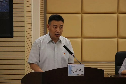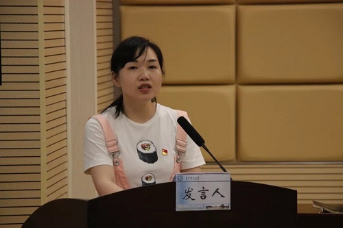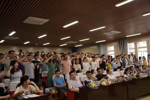 大会第七项,辅导员杨爽老师发言。她说道,四年的时光不快不慢,仿佛昨天大家还在办公室里进进出出,今天就要与大家道别,这四年大家从大一的稚嫩到现在的成熟,而作为辅导员,她也从一开始的手忙脚乱到现在的淡定从容,在这条成长的路上,她与同学们共同前行。最后,她祝愿同学们,做一个自尊自信自爱的人,不断提升自己,完善自己。大会第八项,毕业生代表戴安增同学发言。戴安增分别与大家谈到了缘分、感恩和憧憬。他说道,大家相逢一场是缘分,而天下没有不散的宴席,毕业之际大家也应心存感恩,感谢老师的教诲,感谢同学的陪伴,并祝愿同学们在往后的生活工作中砥砺前行。大会第九项,毕业生朗诵。他们用充沛饱满的感情,回忆了过去四年的点点滴滴,表达了对学院、对老师、对同学的感激与不舍,并对所有师生送出了最真挚的祝福。最后,全体同学共同宣誓。