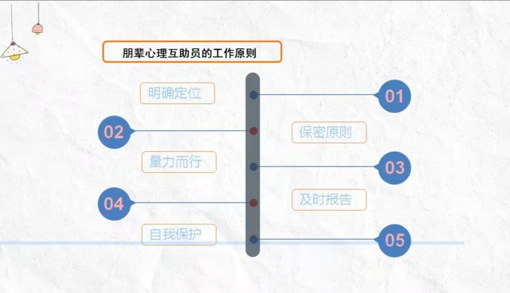 会议最后,郑忠辉在讲解学生在面对心理危机时如何去做时,他首先指出学生在面对考研或考公,考试季、毕业季等特殊时期容易引发自杀等你心理危机。接着,他详细介绍了自杀的分类、动机和征兆,并强调了及时发现和干预自杀行为的重要性。他提出团队心理委员会在发现同学的心理问题时要向辅导员及时报告。并且郑忠辉也对朋辈心理互助员提出了五大工作原则:明确定位、保密原则、量力而行、及时报告、自我保护。