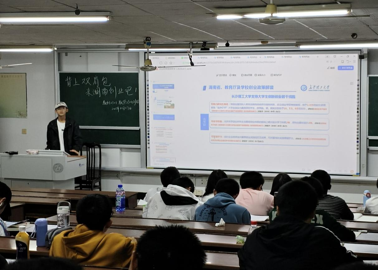 班会伊始,创新创业委员系统解读了湖南省、省教育厅及学校出台的多项创业扶持政策,重点介绍了湖南省针对大学生创业推出的“七个一”政策与“六可以”规定,以及学校配套提供的资金与资源支持,帮助同学们全面把握政策红利。