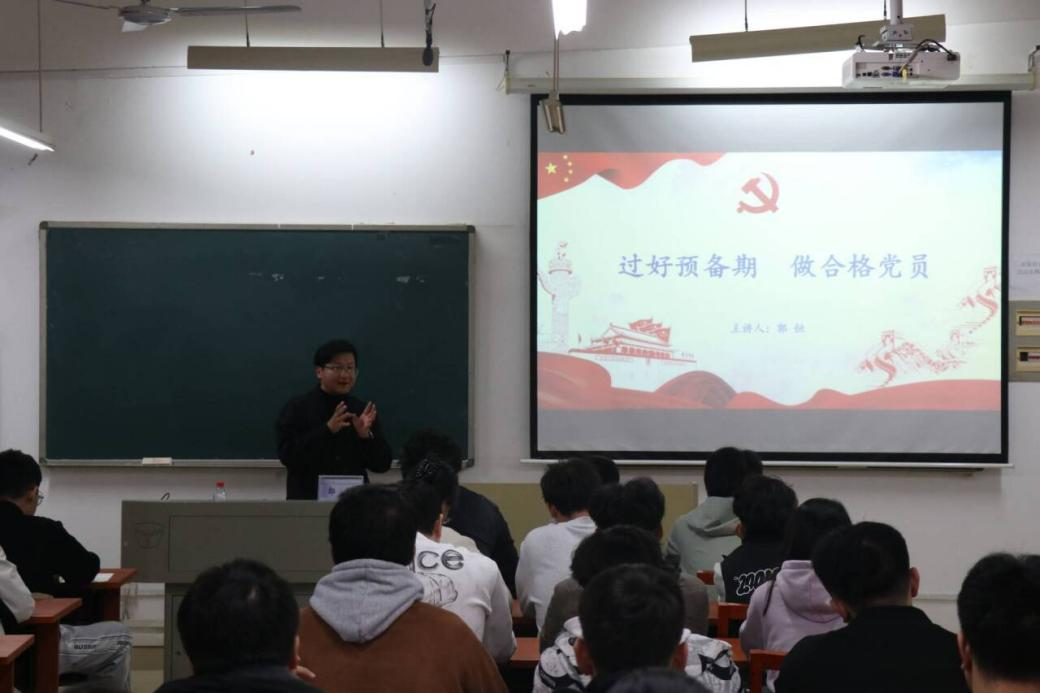 11月11日晚,学院在工科二号楼A612开展《过好预备期,做合格党员》专题党课。外国语学院2025级新生辅导员、院团委书记郭恒应邀主讲,第32期预备党员培训班全体成员参加。