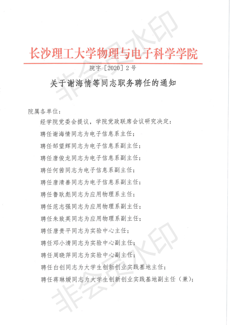 关于谢海情等同志职务聘任的通知