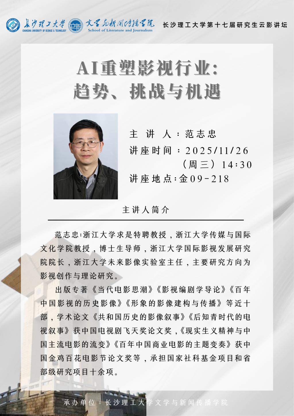 讲座预告:AI重塑影视行业:趋势、挑战与机遇