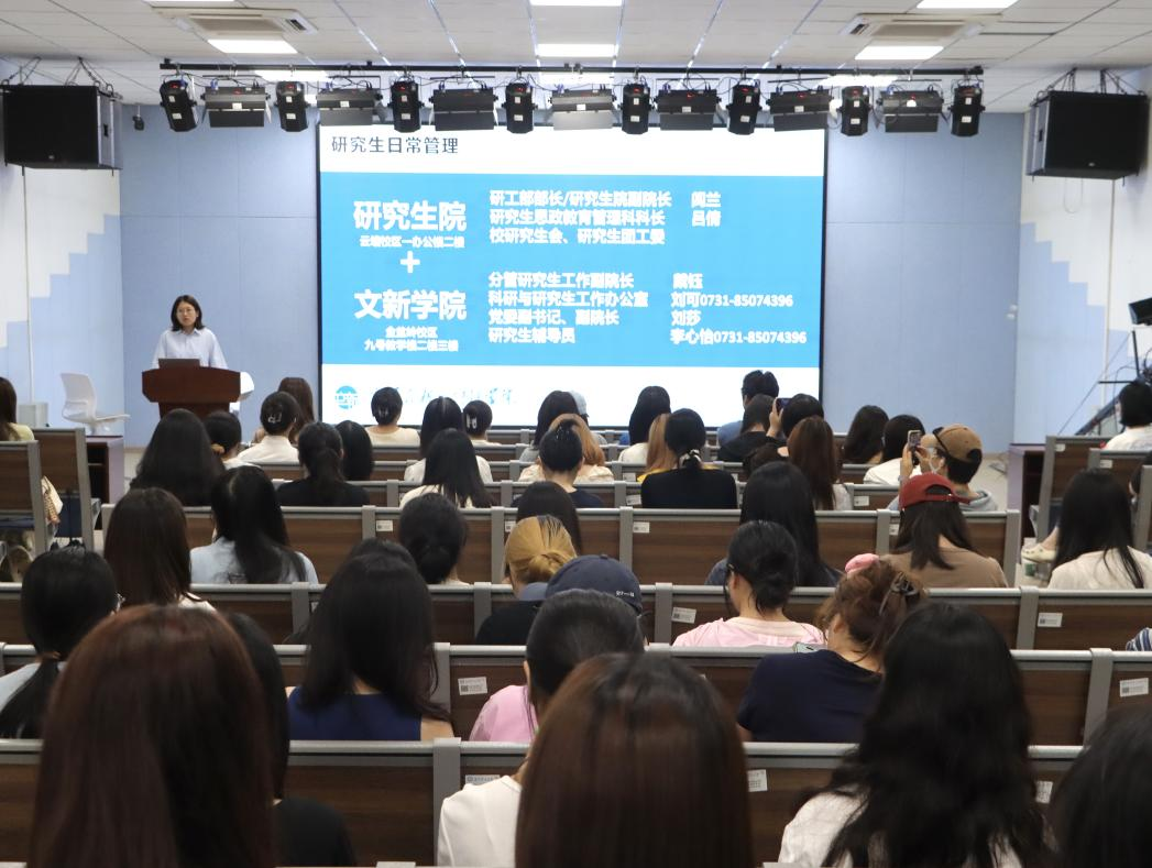 917日上午,2025级研究生新生入学教育之心理健康与安全法纪”讲座金盆岭校区九教113报告厅举行,文学与新闻传播学院研究生辅导员李心怡担任主讲人,文学与新闻传播学院2025级全体研究生参加。