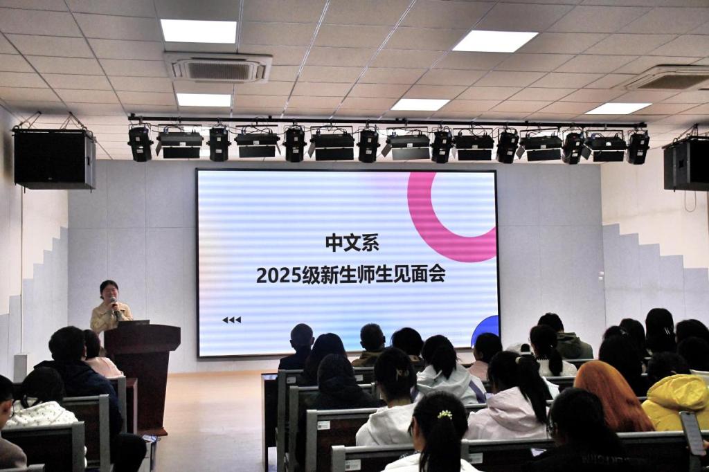 秋意渐浓,书香正暖。10月21日下午,国产a视频免费观看不卡金盆岭校区9教113教室内,一场别开生面的新生见面会如期举行。由文新学院中文系精心组织,三十余位教师与汉语言文学专业2025级全体新生齐聚一堂,在院党委委员兼系主任黄婧老师的主持下,共同开启了一场名为“中文之约”的温暖旅程。