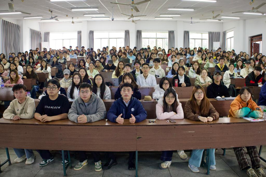 随后,项永生提出“以倒序的方式规划现在的自己”,从就业路径、生涯探索、自我定位、能力储备四大维度展开,介绍了考研、考公、创业、就业、国际汉语教师志愿者等多元发展方向,并推荐”车-日-路模型”等生涯认知工具帮助确认自我定位。针对不同专业,他提出针对性建议:汉语言专业同学若有志从教,应提前储备教育学知识并考取相关证书;新闻与新媒体专业学生需加强实操技能,注重作品积累。项永生还鼓励同学们积极参与第三届全国大学生职业规划大赛,在实践中明晰目标。