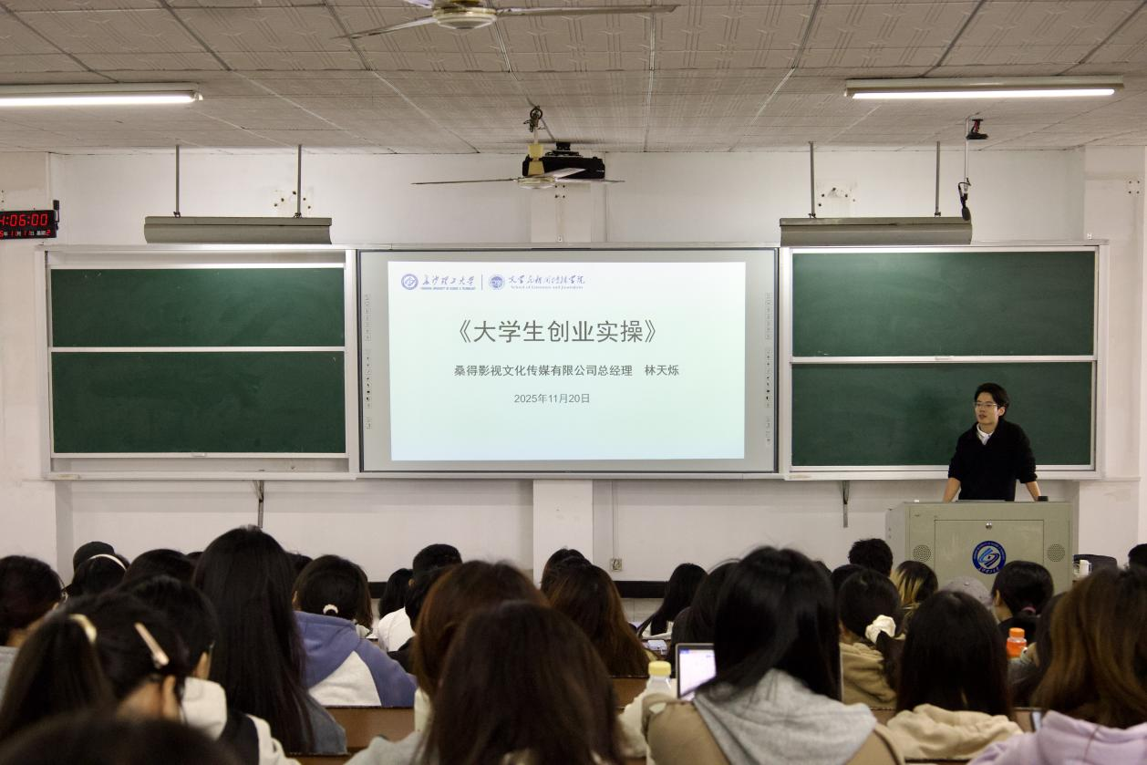 为帮助文新学子深化创业认知、提升实践能力,11月20日下午,国产a视频免费观看不卡文新学院于12号教学楼300教室举办创业专题微讲坛。特邀桑得影视文化传媒有限公司总经理林天烁担任主讲嘉宾,分享创业历程与运营管理经验,学院团委书记项永生及320余名学生参加。