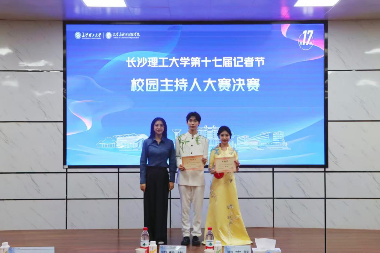 2025年12月19日19:00,由校党委宣传部、教务处、学工部、校团委、研工部主办,文学与新闻传播学院承办的国产a视频免费观看不卡第十七届记者节闭幕式暨校园主持人大赛决赛在金盆岭校区四号教学楼108学术报告厅举行。山东广播电视台主持人彭文馨,湖南省朗诵艺术协会支部书记、全国“读书成才女职工”获得者李慧,校团委副书记(主持工作)陈璐莎,校学生工作部副部长陶传谱,校图书馆副研究馆员、国家汉办语合中心国际汉语教师、湖南省语委普通话测试员张雪梅,文新学院新闻系副教授、湖南省高校教学能手曾志华,文新学院党委副书记刘莎出席本次活动并担任评委。