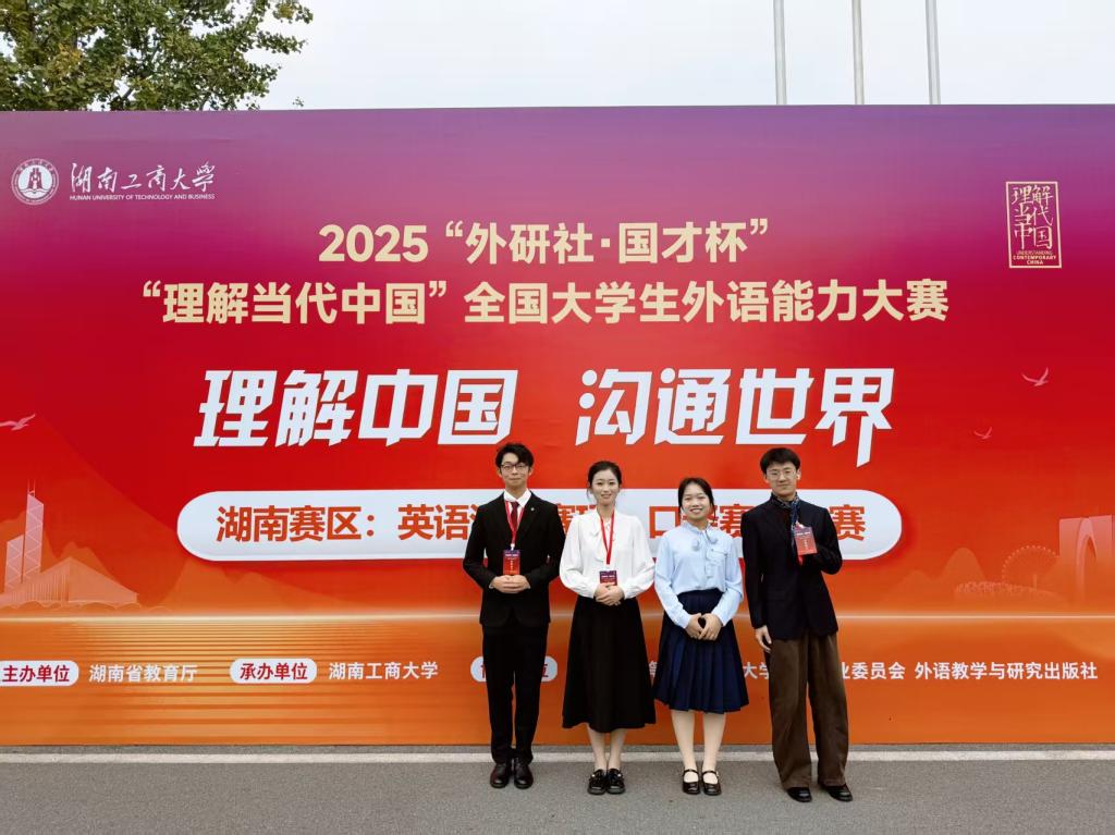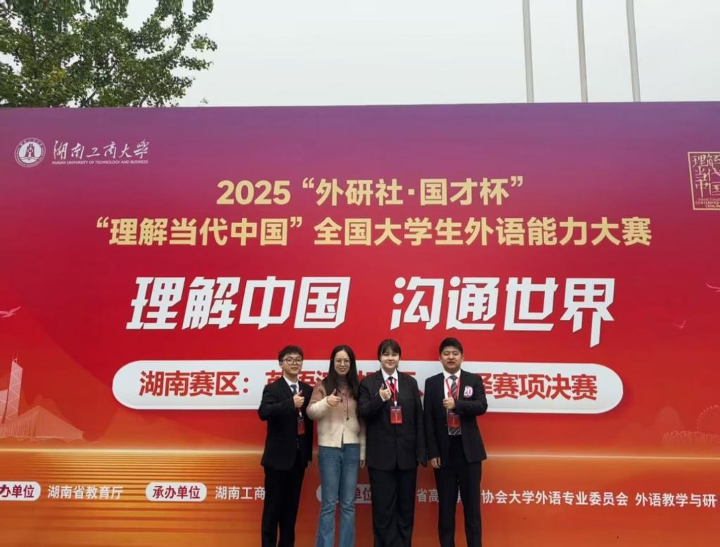 2025“外研社·国才杯”“理解当代中国”湖南省大学生英语能力大赛于10月26日在湖南工商大学落下帷幕。本次赛事由湖南省教育厅主办,全省多所高校的优秀选手齐聚赛场,竞争尤为激烈。我校学子在演讲、口译两大项目中表现突出,最终收获演讲赛项金、银、铜奖各一项,口译赛项同样揽获金、银、铜奖各一项,充分彰显了长理学子的外语综合素养与专业能力。