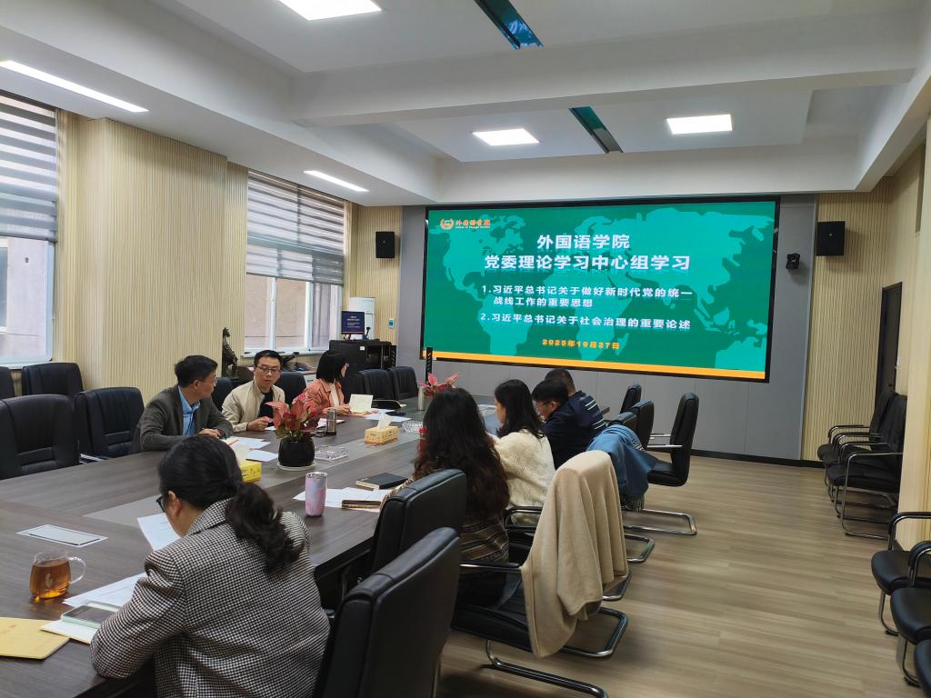 1027午,外国语学院党委理论学习中心组在学院214会议室开展集中学习研讨。