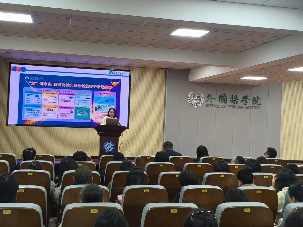 党委副书记周芳作大学生创新创业政策专题辅导报告。她详细解读了湖南省及学校层面的创业扶持政策,重点介绍了针对学生的“六可以”支持举措,讲解了“金种子杯”大学生创业大赛的参赛要求与激励机制,宣讲了面向教师的创业指导相关奖励政策,鼓励教师积极引导学生参与创新创业实践,助力学生职业发展。