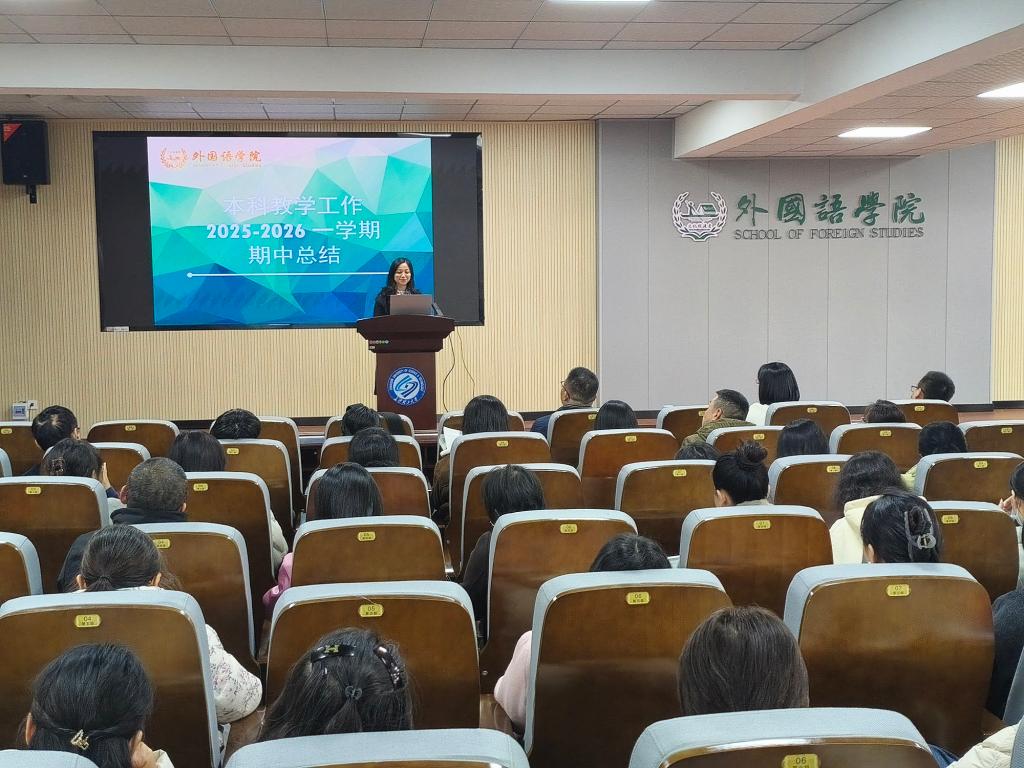 党委委员陈菁简要总结了学院本学期以来的教学工作,通报了教师教学竞赛和学生专业学科竞赛领域取得的新成绩和学院课堂管理的新进步,重点安排了教研活动、课程建设、毕业论文指导、特色课程组建设、“文化摆渡大讲堂”通识讲座等工作。
