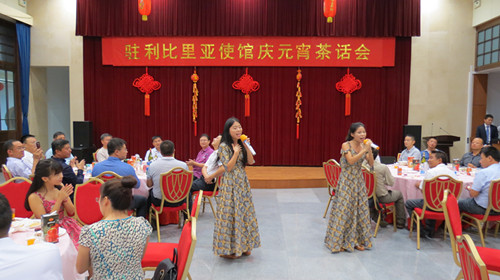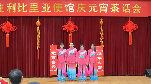 当地时间2017年2月11日下午五点,中国驻利比里亚大使馆圆满举办庆元宵茶话会。中国驻利维和部队、各援利机构、援利企业等的代表出席了招待会。利比里亚大学孔子学院全体中方教师受邀出席,孔院教师们精彩的文艺表演再次惊艳四座,现场掌声与欢呼声连绵不断。