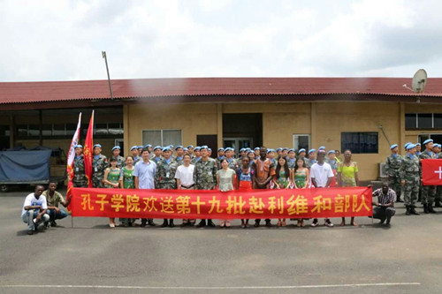 自2008年建院以来,利比里亚大学孔子学院都与中国维和部队保持团结紧密的合作关系。孔子学院与维和部队每年都合作举办春节联欢晚会等文化活动,并共同走进利比里亚中小学举行教学和捐赠等交流活动。维和部队守护着利比里亚的平安稳定,孔子学院促进了利比里亚的文化交流,二者相互帮助、共同促进了利比里亚的发展。孔子学院与维和部队二者之间的友谊合作也被传为中国人民团结友好的合作典范。