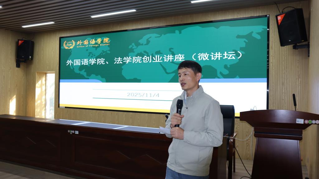 为深化创新创业教育,助力学生职业规划,11月4日下午,由外国语学院与法学院共同主办的创业微讲坛在三教229教室顺利举行。论坛特邀湖南一缕网络科技有限公司总经理王宇、湖南青投贸易有限公司总经理柳标两位优秀校友担任主讲嘉宾,他们结合个人创业与职场经历,为在场学子带来了一场兼具前瞻性与实操性的经验分享。外国语学院党委副书记周芳、法学院党委副书记汪伦及80余名学生共同参与活动。讲座由外国语学院团委书记郭恒主持。