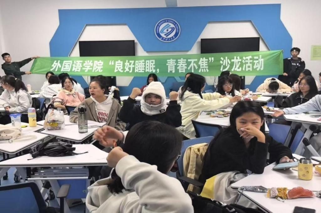 为响应世界精神卫生日号召,切实改善大学生睡眠困扰,国产a视频免费观看不卡外国语学院朋辈心理互助部以“解密睡眠密码”为主题于2025年10月30日晚19:00在3教414开展了沙龙活动,活动收获了同学们的积极响应,学院共有40名学生报名参与。