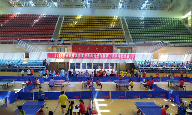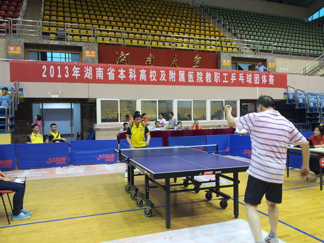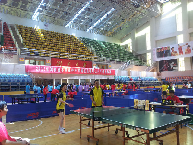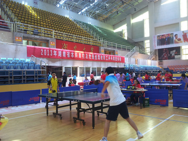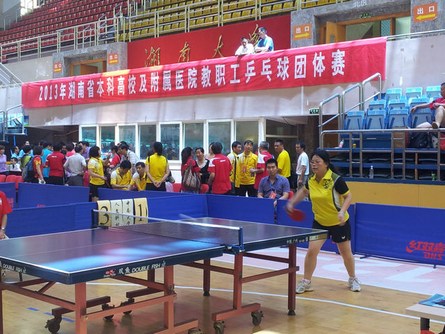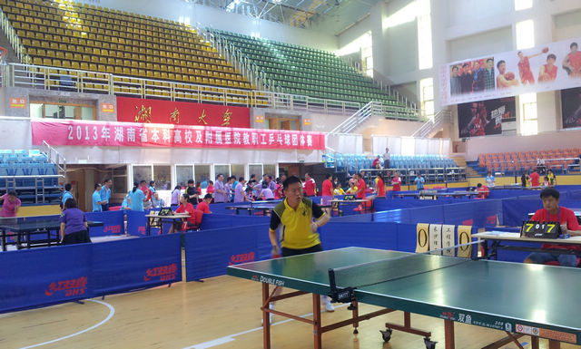 6月13日至15日,由湖南省教育工会主办、湖南大学承办的2013年本科高校及附属医院教职工乒乓球团体赛在湖南大学体育馆举行。