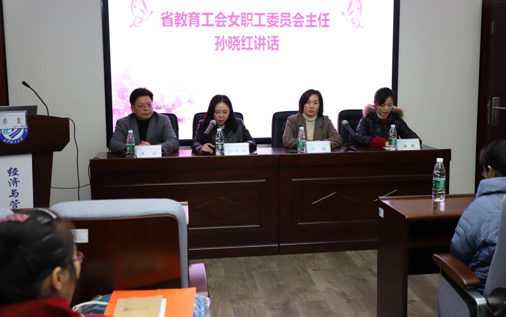 “女职工业余学校”新址落户经管学院,王宏作为东道主,他表示将大力支持学校建设,为学校教学提供一切便利条件。然后,郭剑宣布了学校的机构及人员设置,并给新聘人员颁发了聘书。接着,“女职工业余学校”校长方琼讲话,她结合自己的妇联工作经历,谈了对女工培训的认识,并介绍了学校的培训计划,提出“一二三四五”计划,即:紧紧围绕“芙蓉杯”竞赛这一依托,充分运用线上、线下两种方式,大力依靠讲座、协会、联谊三种途径,全面提升女职工的思想道德、文化技术、学习创新和身心健康四大素质,广泛开展传统文化、形象礼仪、健康保健、家庭教育、生活技能五组内容的培训。紧接着,孙晓红与方琼共同为新址揭牌。最后,孙晓红讲话,她对我校的女工工作给予了高度肯定,并提出了三点希望:一是要做到培训方式多样化,培训内容多元化,培训范围全面化;二是不断引导女职工更新学习理念,激发学习热情,提高学习能力,取得学习成果;三是充分调动和发挥广大女职工的积极性、主动性和创造性,鼓励女职工充分发挥聪明才智,展示巾帼风采。