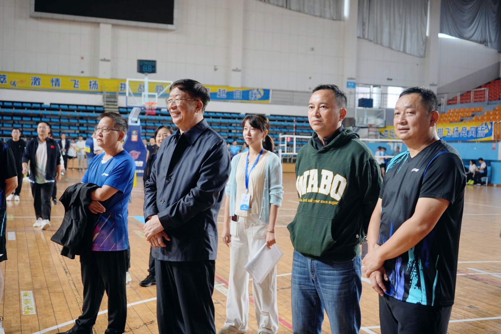 开幕式在庄严的国歌声中拉开帷幕。教职工舞蹈协会带来了热情洋溢的开场表演,瞬间点燃了现场气氛。运动员代表和裁判员代表依次郑重宣誓。本次比赛采用五人制男女混合赛制,分为小组循环赛、交叉淘汰赛和决赛循环赛三个阶段。