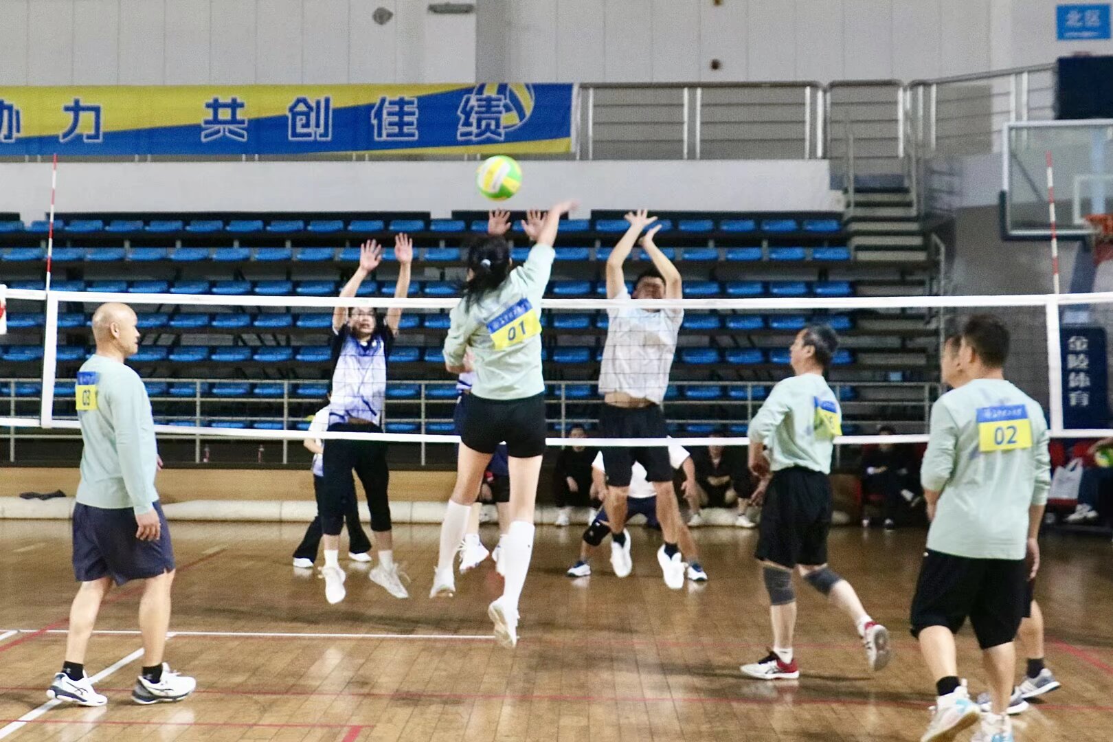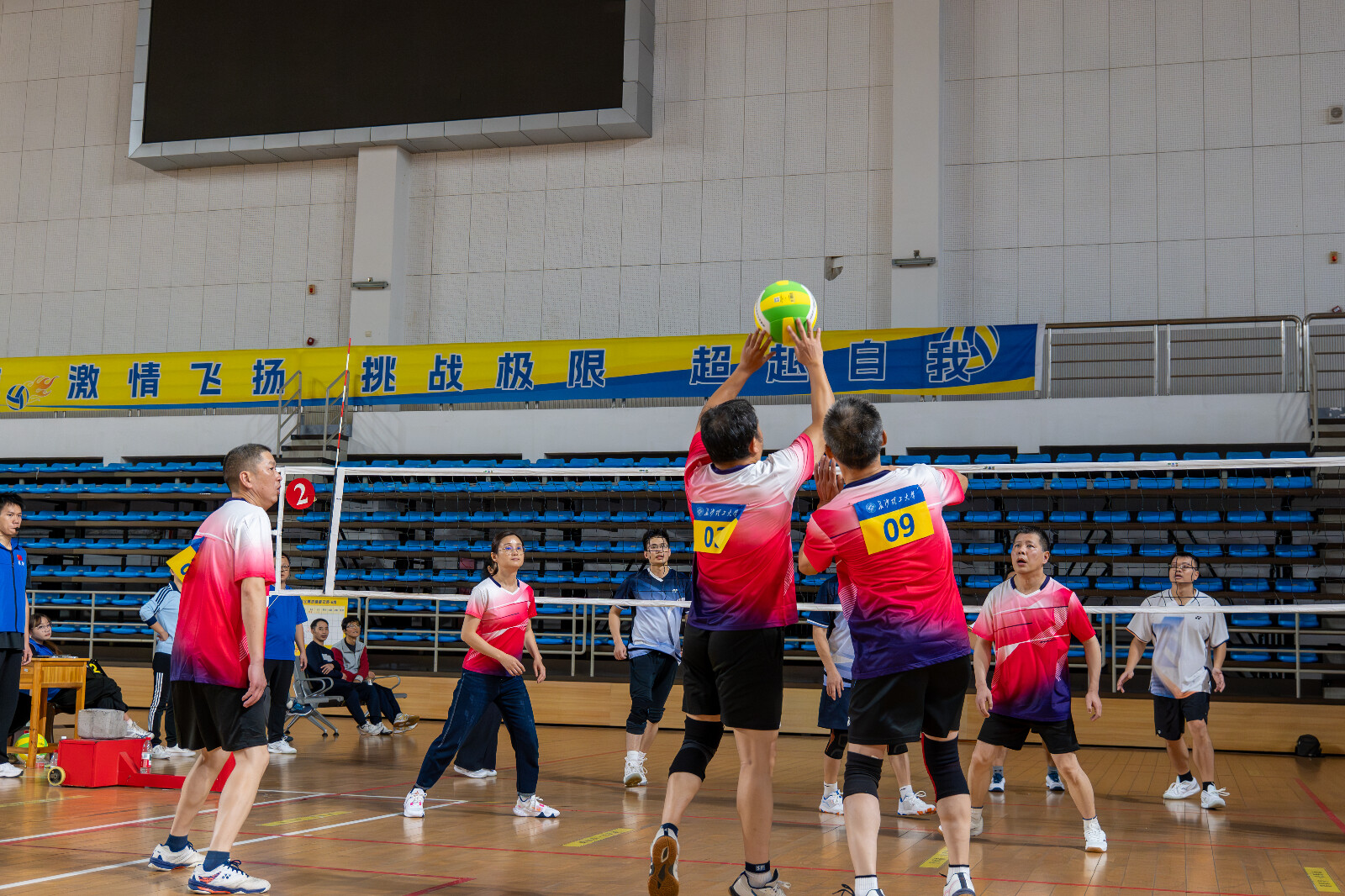 赛场上,各代表队斗志昂扬,奋勇当先。发球、垫球、传球、扣球、拦网、救球……紧张激烈的竞赛场面屡屡出现,每一个精彩瞬间都引来观众阵阵喝彩。选手们默契配合,团结协作,既展现了个人精湛技艺,又体现了团队协作精神。现场气氛热烈,掌声、欢呼声此起彼伏,充分展现了我校教职工积极向上的精神面貌。