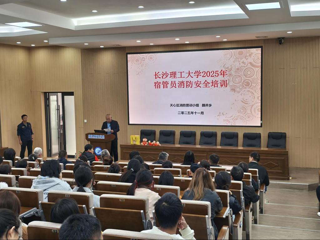 为筑牢校园公寓安全防线,响应国务院安委会办公室2025年全国消防宣传月号召,11月11日下午2:30,学生工作部公寓管理服务中心在金盆岭校区经管大楼100报告厅成功举办“全民消防、生命至上——安全用火用电”专场活动。普消消防资深教官颜井乡应邀参加授课培训,金盆岭校区全体员工、学生社区自主管理委员会学生代表、保卫部副部朱波涌、消防干事易剑等参加活动。
