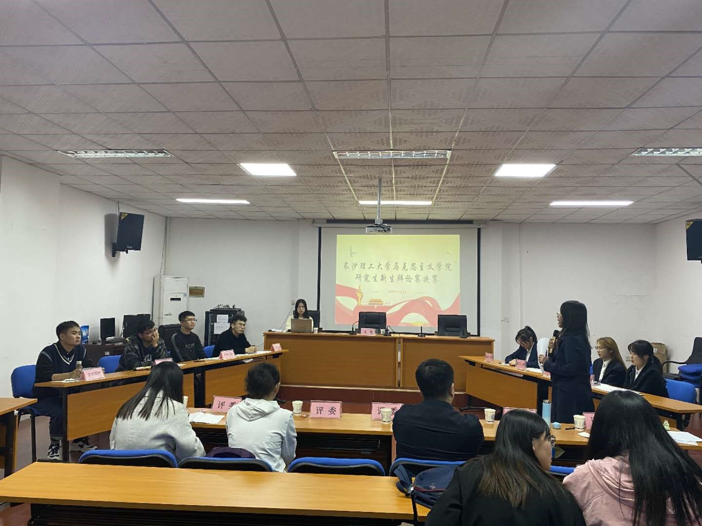 11月3日晚,马克思主义学院在金盆岭校区2教101会议室举行了2020年“思辨人生”新生辩论赛决赛。本轮辩论赛由校研究生院副院长兼研工部部长田上、马克思主义学院副院长李雨燕、哲学系主任郭华、哲学系副主任廖苗和研究生辅导员曾蓓担任评委,院研究生会主席魏俊松主持,院2020级全体研究生参加。