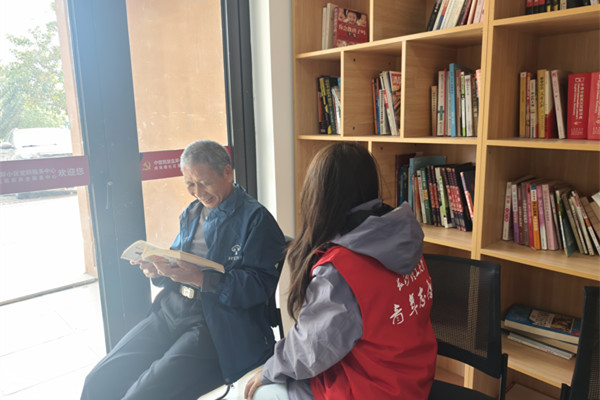 当天下午,志愿者们满怀热情地抵达服务中心。志愿者们围坐在老人身边,亲切地与老人们唠起家常,仔细聆听他们讲述过往的经历与生活点滴,关切地询问他们的身体状况和日常生活需求。欢声笑语充满了活动室,其乐融融的氛围驱散了老人们的孤独感。部分具备特长的志愿者还准备了经典的红色歌曲演唱和简单的互动游戏,引得老人们开怀大笑,纷纷鼓掌应和。此外,志愿者们结合自身化学与医药的专业背景,耐心向老人们普及了日常用药安全、秋季健康保健等小知识,展现了理工科学子的人文关怀。