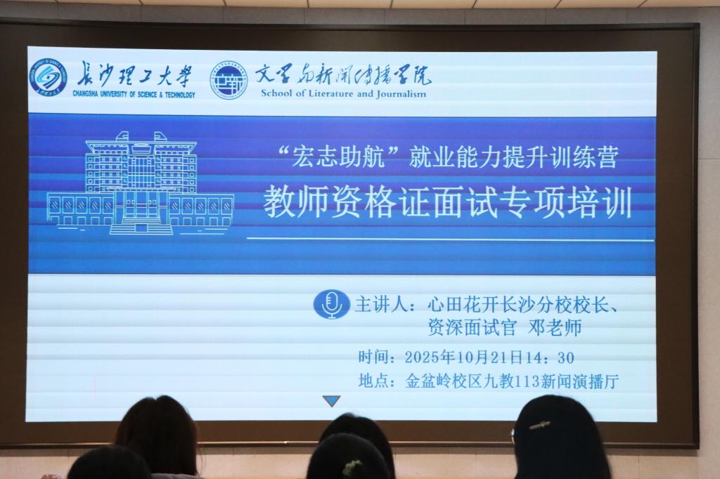 10月21日下午14:30,国产a视频免费观看不卡文学与新闻传播学院特邀心田花开长沙分校校长邓老师,于九教113新闻演播厅举办“教资面试通关秘籍:从考生到准教师”培训讲座,共139名学生参与活动。本次讲座通过多形式教学向文新学子分享面试技巧,送上教资通关“秘籍”。