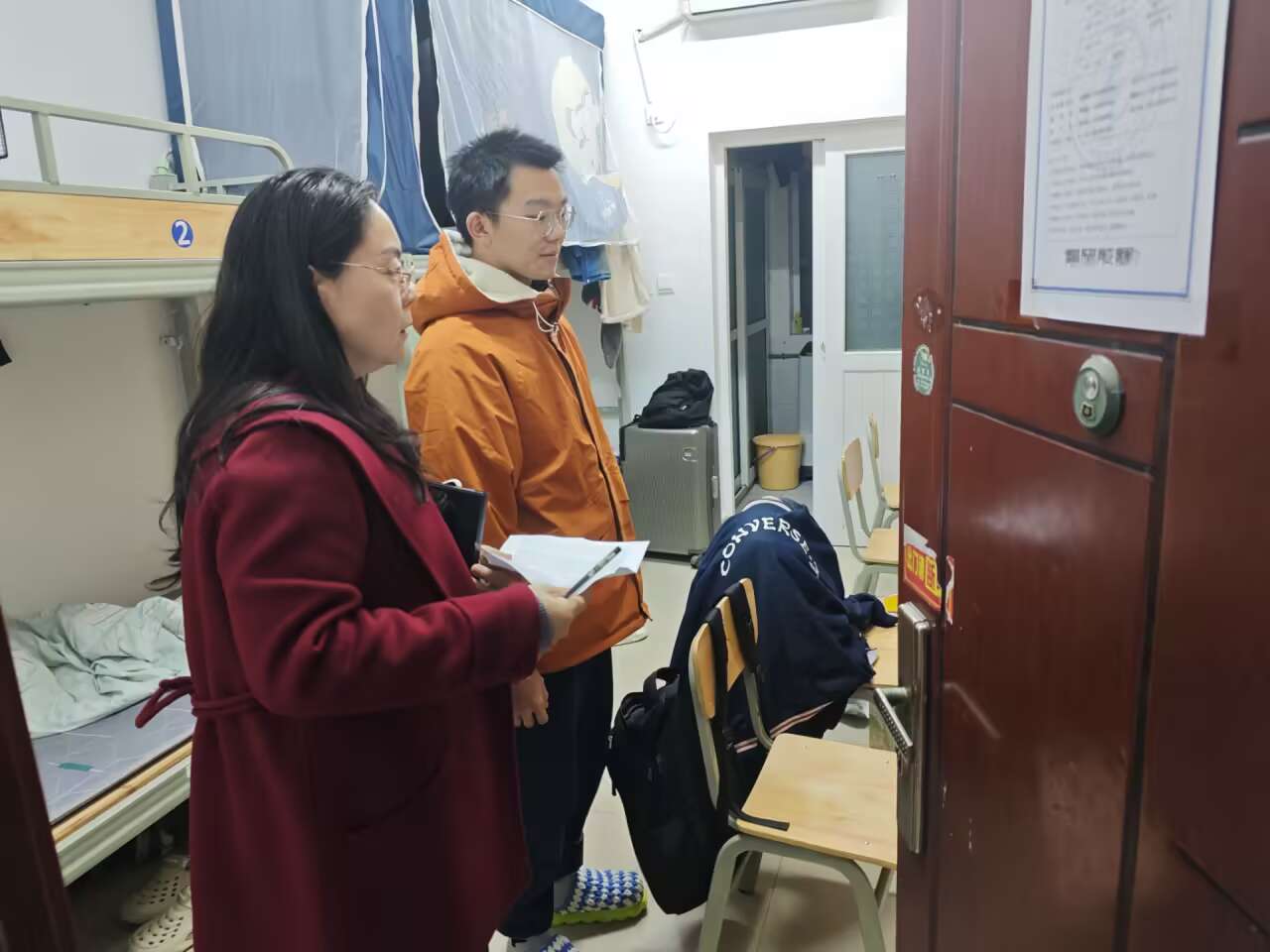 “四级考试在即,最后一周大家重点准备一些作文的常用句式,冲刺冲刺!”能动2503班班主任曾栋坪结合自己在大学阶段备考的经验在晚自习教室与大家分享,3班的同学们看到班主任到来,纷纷拿出最近不懂的高数题目求指导,曾老师在现场直接为大家开始讲解习题。“这段时间开始毕业设计选题了,大家有啥不明白的地方可以直接来新能源找我,一定要在规定时间内完成,不要影响后面的进度”,水动2201班班主任刘忠老师不厌其烦地提醒着同学们,同时对于即将上考场的同学送上自己的祝福。刚在全国“挑战杯”比赛中指导学生团队喜获特等奖的能动2505班班主任喻哲钦则被17栋216的同学们围着分享比赛过程中的感受以及选拔团队成员需要具备的特质,话语里全是对于科创竞赛充满期待与憧憬。