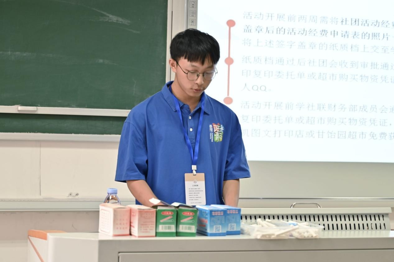 会议由社团大会和社团骨干培训班开班仪式两部分组成。首先,校团委尹纷老师在致辞中肯定了学校社团的现阶段发展情况,并强调社团骨干应以学习为本、服务为魂,明确责任使命,提升综合素质,引领社团发展;此外,她还强调了创新和实践的重要性并鼓励大家勇于尝试新方法,推动跨社团合作与工作模式创新。随后,学社联各部门代表讲解相关制度,帮助社团了解学年活动与评优事宜。