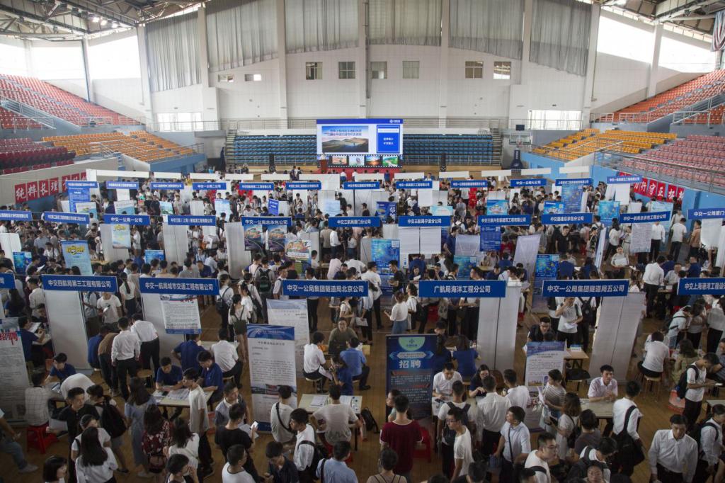 宣讲会后,谈传生和中国交建领导现场查看了招聘活动,并与参会单位代表和毕业生进行了交流。招聘范围涵盖了交通类、土木类、经管类、机械类、文法类、材料类、水利类、测绘类、管理类、信息类、外语类等相关专业。来自我校及长沙周边高校的2019届相关专业近4000名毕业生参加了招聘会。