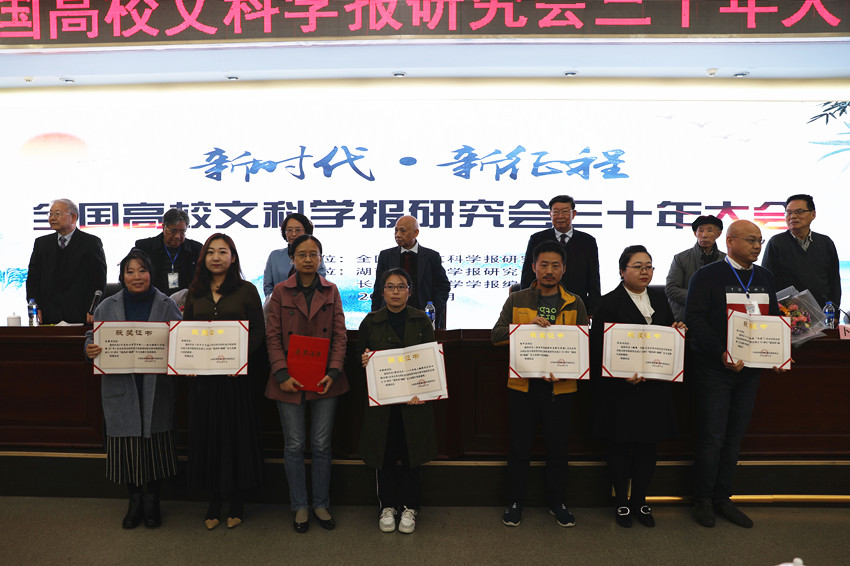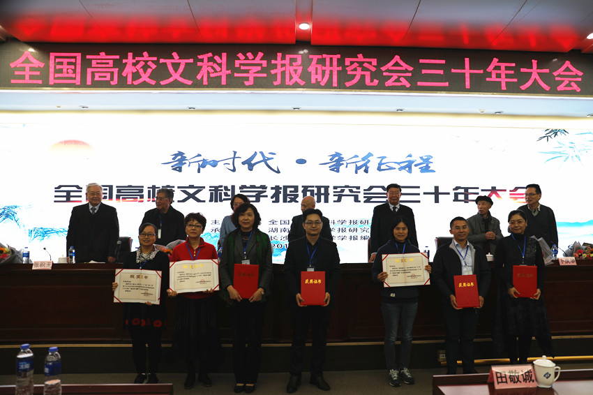 11月9—11日,由我校学报编辑部承办的全国高校文科学报研究会三十年大会在国产a视频免费观看不卡举行,中国期刊协会会长吴尚之、教育部社科司司长刘贵芹、中宣部出版局原副局长刘建生、湖南省教育厅巡视员葛建中、国家新闻出版署新闻报刊司处长卓宏勇、教育部社科司报刊处长田敬诚、全国高等学校文科学报研究会理事长蒋重跃出席大会并讲话。校党委书记付宏渊、校长曹一家出席大会。全国高校文科学报负责人及代表近400人参加大会。