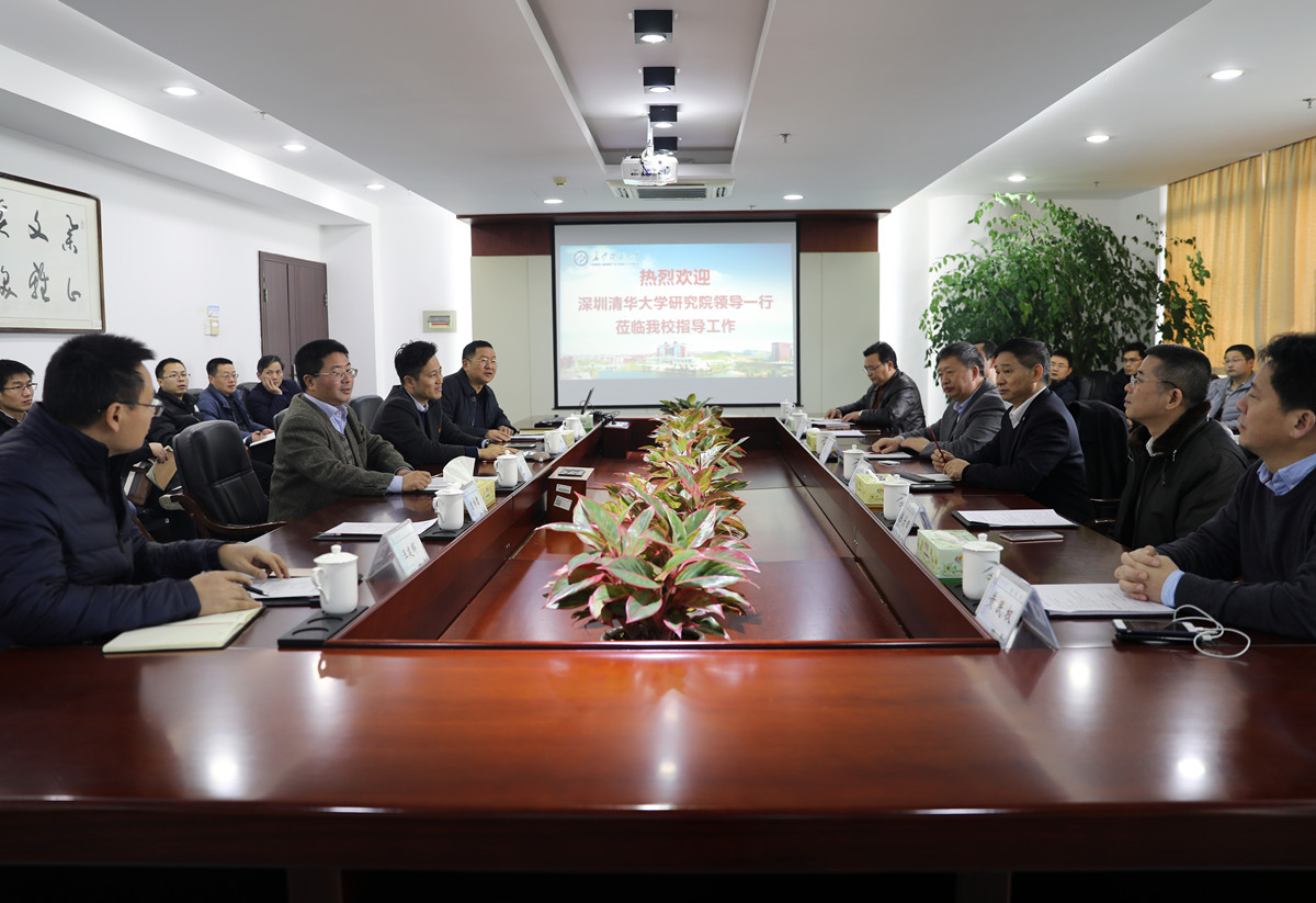 12月12日下午,深圳清华大学研究院院长嵇世山一行来我校交流考察。校党委书记付宏渊专门会见了嵇世山一行。校长曹一家,副校长刘扬,校长助理曾祥君以及成果转化中心、科研部、学院分管科研负责人及部分从事成果转化教师代表参加了座谈会。会议由刘扬主持。