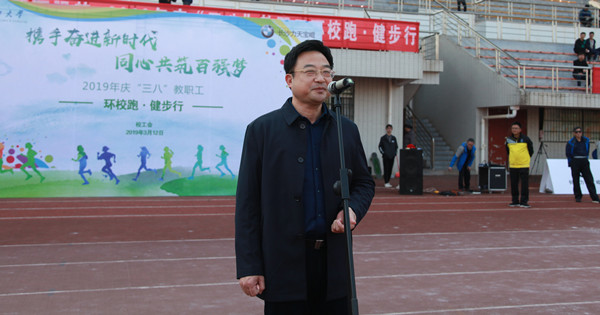 3月12日下午,春光明媚,我校庆“三八”教职工环校跑(健步行)活动在云塘校区举行,来自全校25个分工会,近1000名教职工自愿报名参加活动。校党委副书记兼工会主席邹宏如出席环校跑开幕式并讲话。