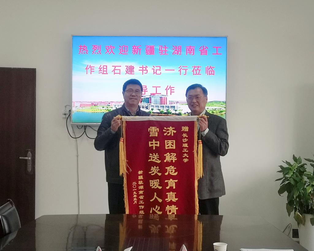 石建对我校少数民族学生工作给予充分肯定,对学校给予新疆少数民族学生的关怀表示感谢并赠送了锦旗。