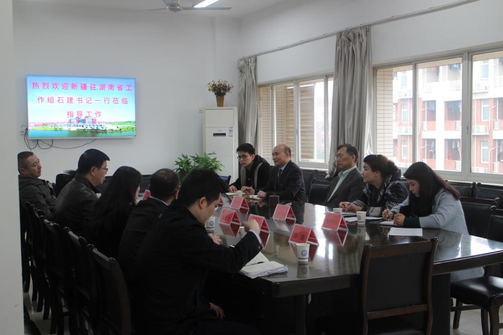 3月14日,新疆驻湖南省工作组党委书记、组长石建,党委副书记、副组长艾美华等一行6人来我校调研少数民族学生思想政治教育。副校长谈传生,新疆内派我校教师热米拉以及学生工作部相关人员参加了会见。