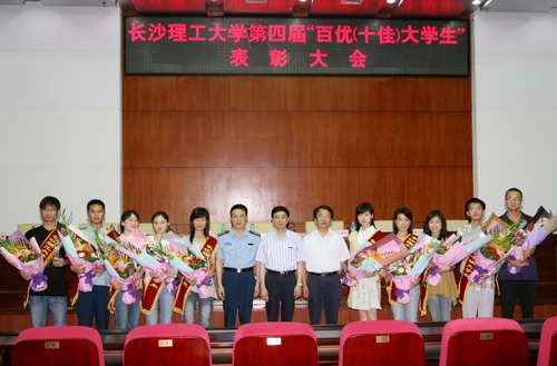 会上,王书记等领导为本届“百优(十佳)大学生”颁奖,学生代表向“十佳大学生”献花祝贺。会后,王耀中书记、黎正稳副校长等领导与“十佳大学生”亲切合影留念。