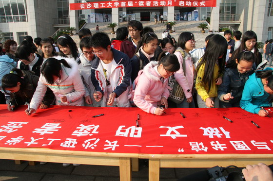 启动仪式由图书馆馆长成松柳主持,副校长柳见成、付宏渊,湖南省高校图工委秘书长、湖南大学图书馆馆长郑章飞,校团委,校学生工作部(处)和校工会的有关负责人,部分学生代表共计400余人参加了“读者活动月”启动仪式。柳见成副校长在启动仪式上讲话,充分肯定了图书馆在高校教学科研中的重要地位。郑章飞秘书长对我校举办“读者活动月”活动给予了高度评价。