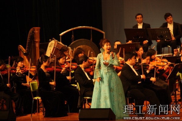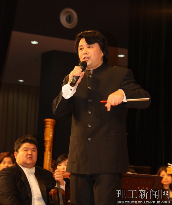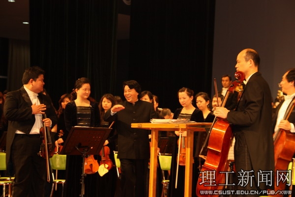 在演出过程中,国家一级指挥肖鸣先生以幽默诙谐、通俗易懂的语言介绍了交响乐欣赏常识及各种相关乐器知识,参演的艺术家们针对各种乐器的特点一一进行独奏表演。在介绍中还不时向观众提问,我校学生一一现场作答,他对我校学生较高的艺术知识水平表示了高度赞扬。