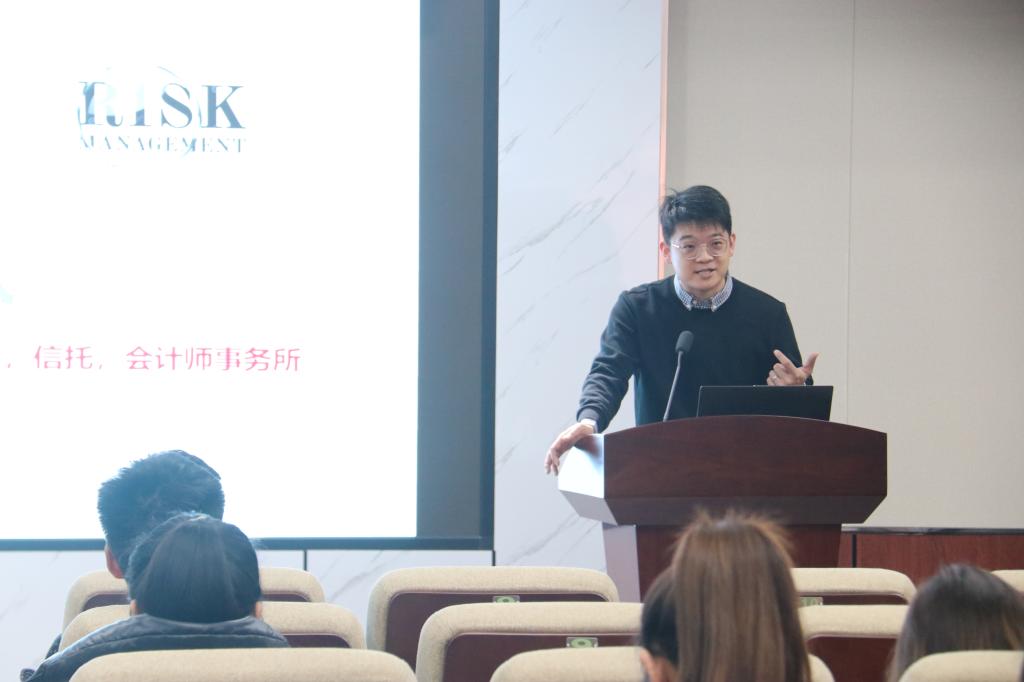 王佳本科毕业于中南财经政法大学,圣玛丽大学金融学硕士,入围深圳市领军人才计划,现就职于深圳国有银行金融市场部。他从“为什么要关注金融业”这个问题出发,和同学们探讨了金融的本质,例举了一些我们身边的投行业务,鼓励大家多阅读金融专业书籍、关注身边金融发展动态。接下来,他详细介绍了CFA(Chartered Financial Analyst的缩写,特许金融分析师)与FRM(Financial Risk Manager的缩写,金融风险管理师)证书考试课程体系,并建议大家规划好考试时间。最后,他提出了几点宝贵建议,希望大家熟练掌握专业知识,多语种学习,不断提高人际交往能力,全面发展。会后,他解答现场同学们的疑问,并且有针对性地给出了自己的建议。