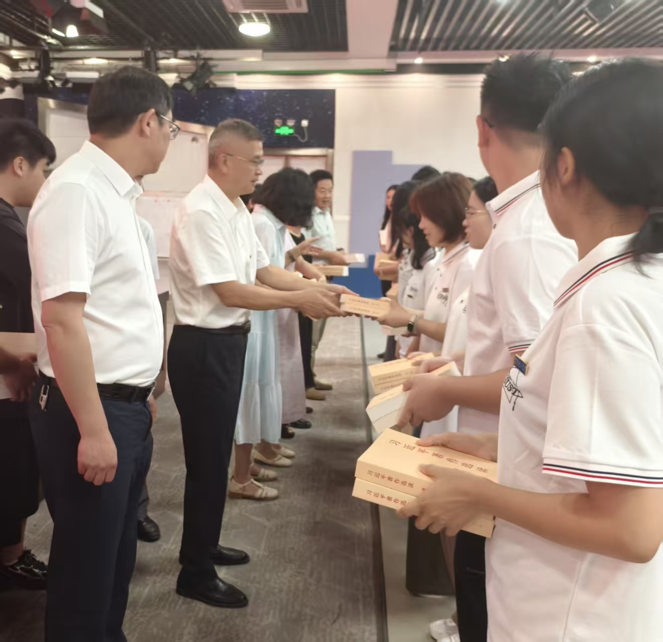 典礼最后举行了赠书仪式,学院领导及教授代表为新生赠送经典著作。张明海勉励大家要读原著、学原文、悟原理,夯实理论根基,争做党的创新理论时代潮流中的弄潮儿,坚持做到学理论、用理论、宣传理论。