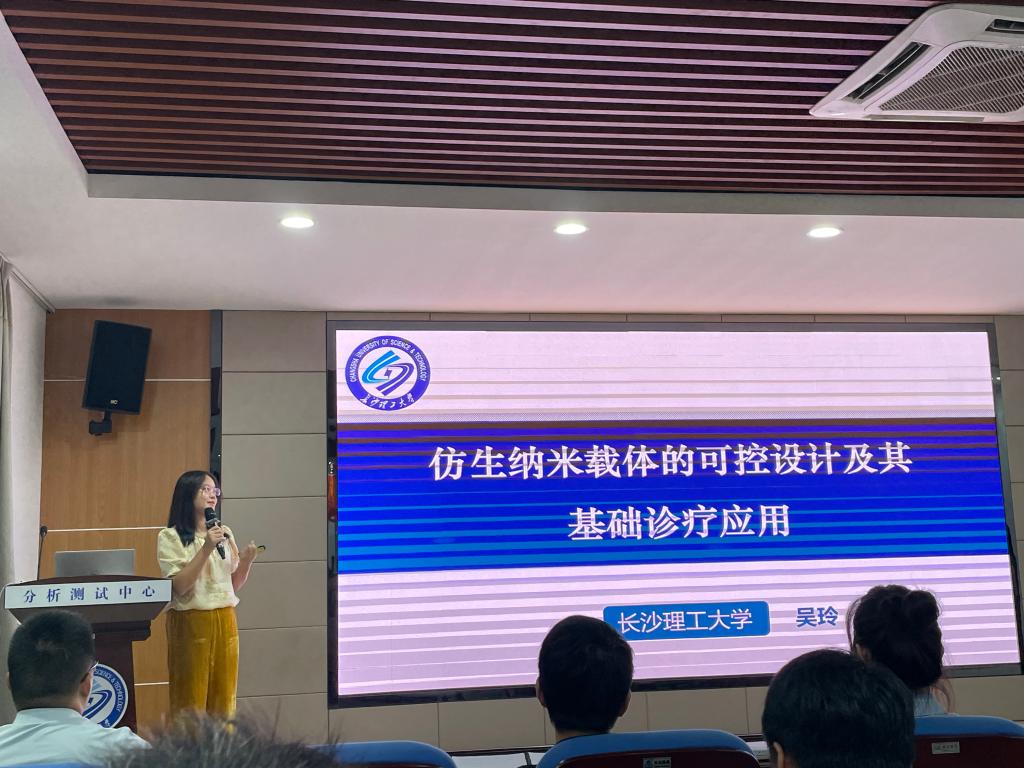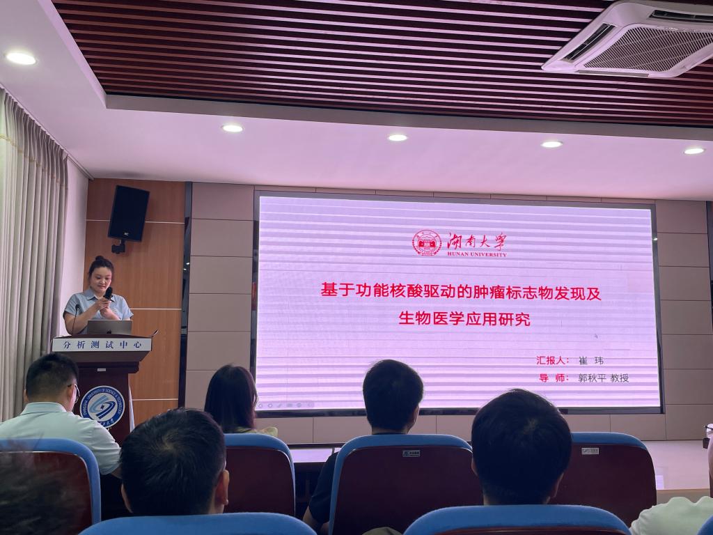 在学术报告环节,崔玮以“基于功能核酸驱动的肿瘤标志物发现及生物医学应用研究”为题,系统介绍了功能核酸作为高效工具在新型肿瘤标志物发现及诊疗策略开发中的应用前景。吴玲以“仿生纳米载体的可控设计及其基础诊疗应用”为题,深入探讨了该类载体的设计理念与诊疗一体化潜力;高思佳介绍了一种可通过降解细菌生物膜的关键成分——胞外DNA的新型材料,有效对抗生物膜,在组织再生领域展现出良好应用前景;张田宇则围绕非核酸靶标表达水平的变化与生物传感这一主题,系统阐述了其在生物分析检测领域的研究成果。在互动环节中,现场师生踊跃提问,围绕报告中的技术细节、研究难点及未来发展方向与各位报告人展开了深入交流与探讨,学术氛围浓厚。