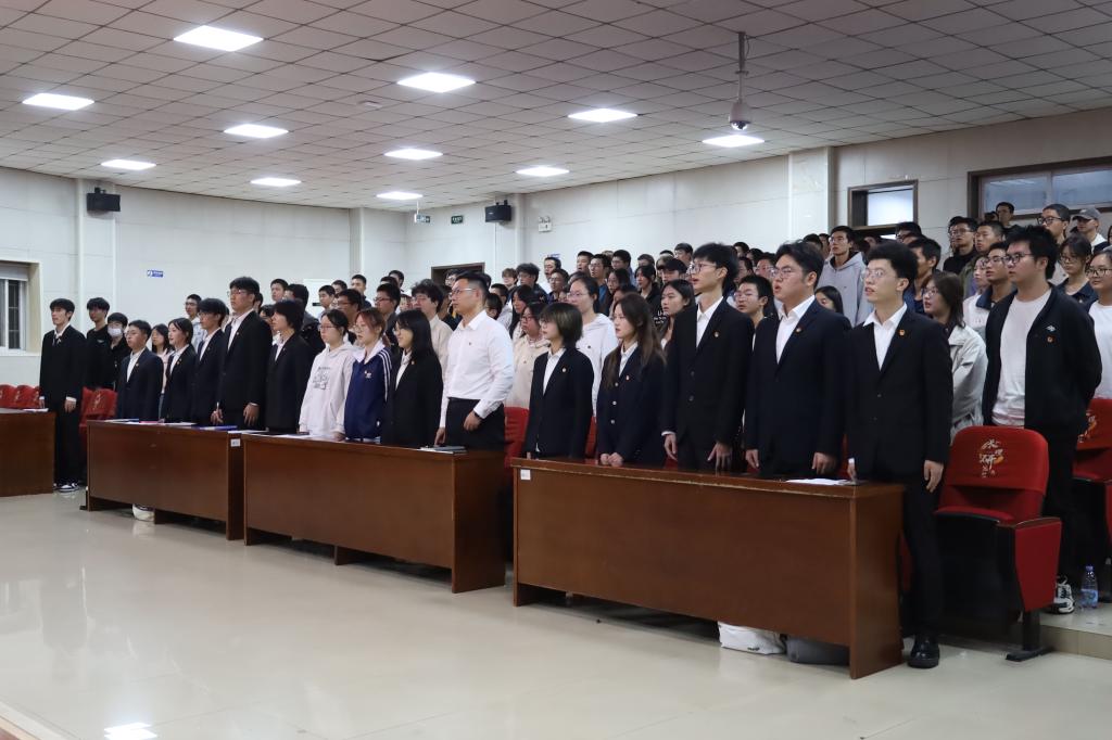 会议在全体奏唱的团歌声中拉开序幕。龚亮以“如何做好共青团干部”为主题,为参会团学干部阐述了共青团的性质和新时代的基本任务。他表示,共青团工作最根本的属性是政治性,共青团干部在工作中要提高政治站位,增强在青年学生群体中的思想政治引领作用。他结合自身学生干部经历,对参会学生干部提出了三点希望:一是做好学生本职工作,在学习和生活中争先创优,发挥共青团干部的引领作用;二是要以高标准履职尽责,做到“手勤、脑勤、腿勤、嘴勤”;三是要强化责任担当,将学生工作当作“一项事业、一门学问、一份责任、一种生活”,扮演好沟通桥梁的角色。