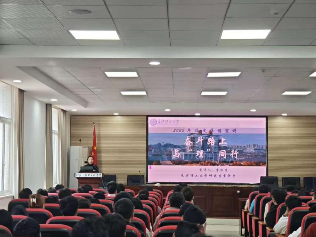 为使2025级研究生深入了解学校发展历程,感悟长理文化精神,11月4日下午,能动学院在云塘校区新能源大楼二栋502举行校史校情主题讲座。本次讲座由校研究生宣讲团成员李欣月主讲,能动学院2025级全体研究生参加。