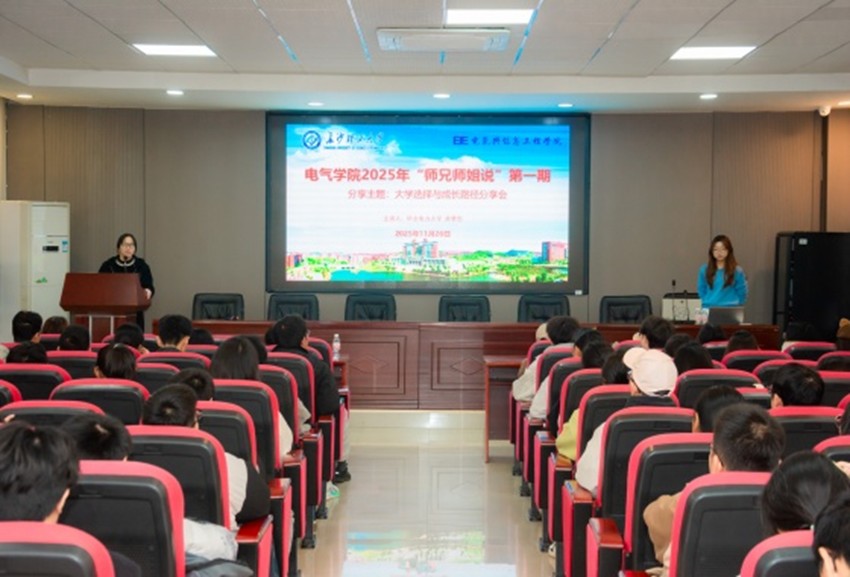 11月26日晚,电气与信息工程学院在云塘校区工科一号楼B503举办《从迷茫到清晰:我的大学选择与成长路径》主题分享会。2025级辅导员田孟萍、朱杰,以及190名学生共同参加。本次分享会特邀华北电力大学研究生、电气学院智能电网信息工程专业2021级本科生乔梦雪主讲。