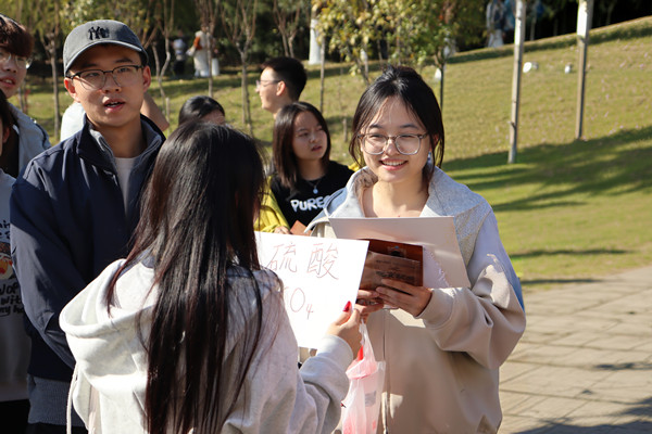 “镇长离奇失踪,唯一的线索竟藏在化学方程式里!”11月30日,校园里上演了一场沉浸式“化学探案”——化学与医药工程学院打造的“化学知识大冒险”趣味科普活动,吸引了各专业学生化身“校园侦探”,在任务中破解谜题、收集线索。活动现场气氛热烈,笑声与讨论声此起彼伏,同学们在推理中学习化学,在协作中激发科学热情。